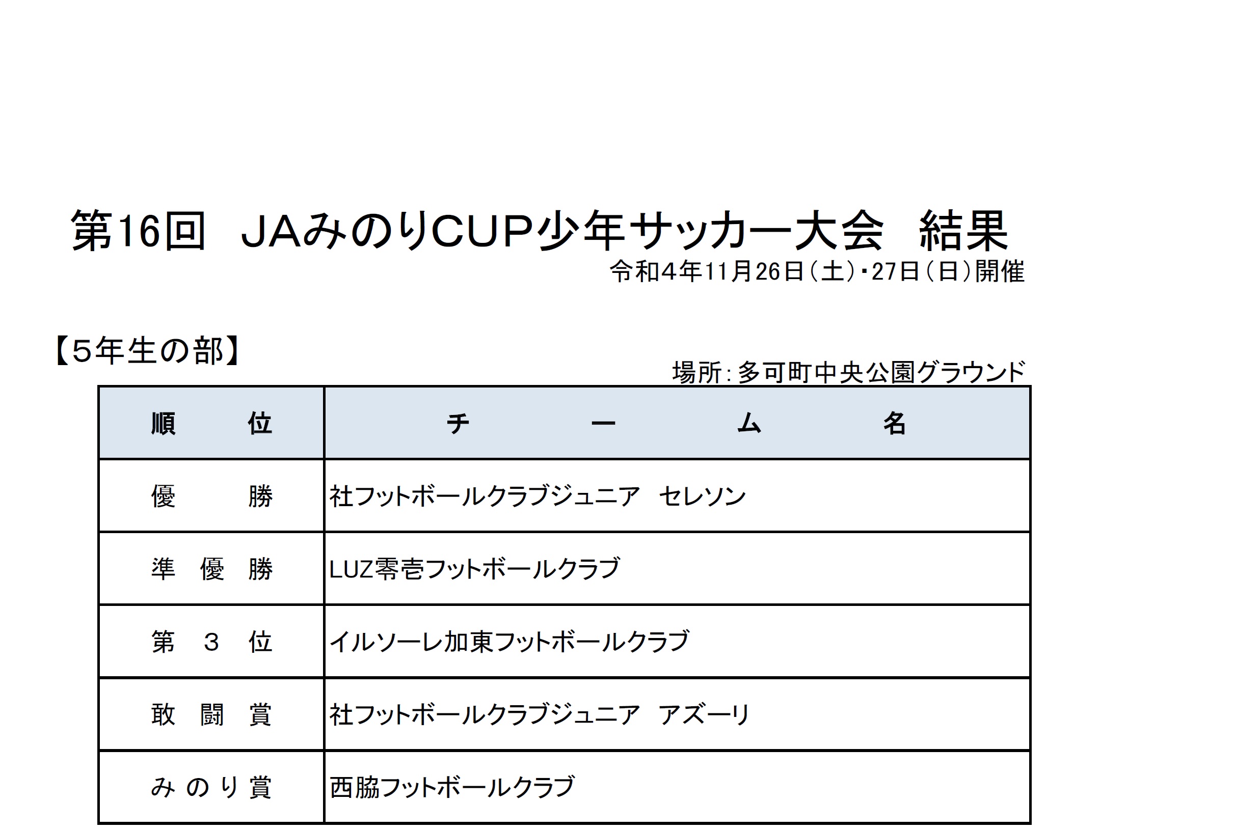お知らせ 2022年11月27日第16回JAみのりCUP少年サッカー大会