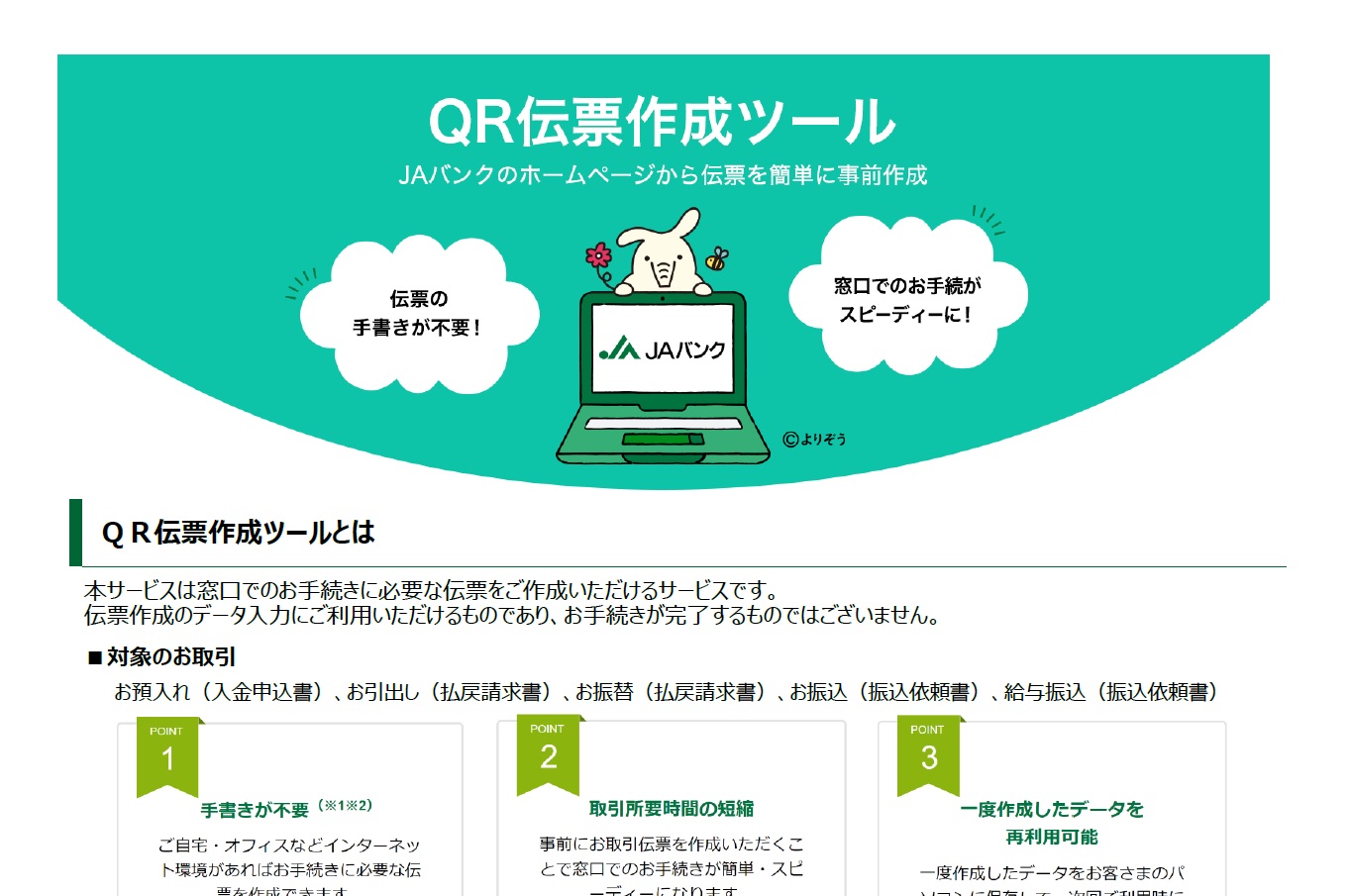 お知らせ 2025年08月12日JAバンクのホームページから伝票を事前作成できるようになりました。
